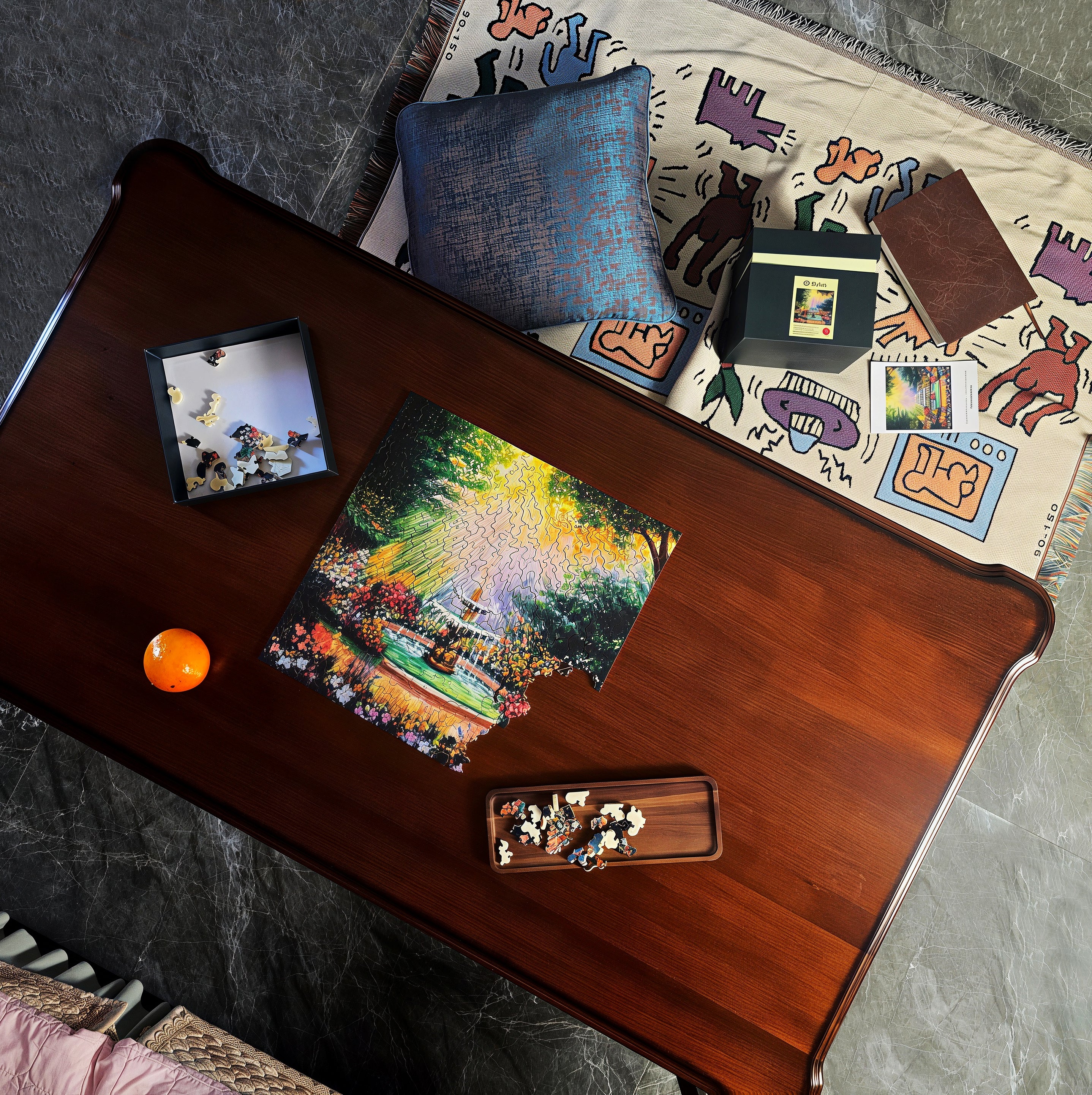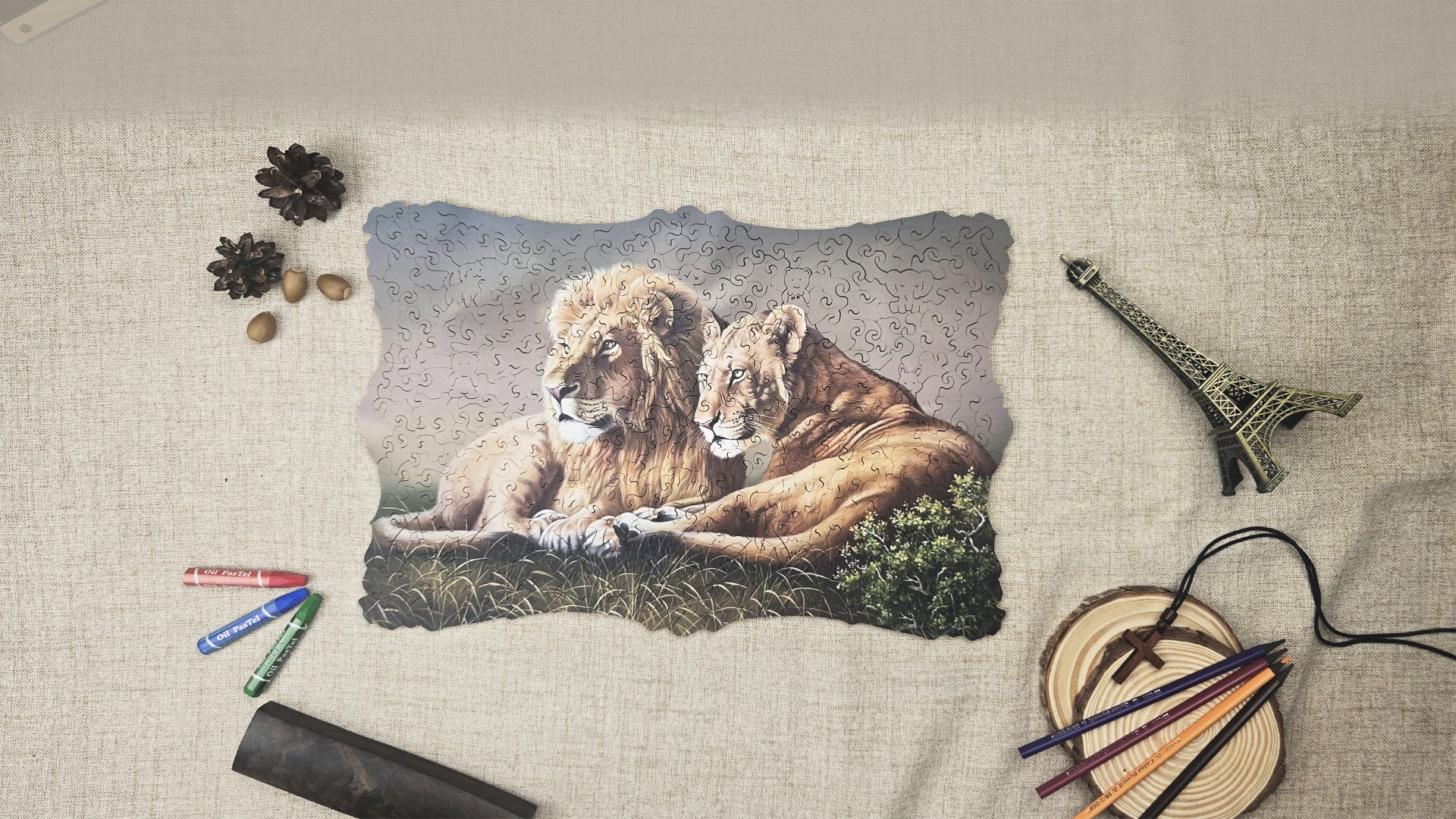 Every puzzle begins by hand, guided by skill and an understanding of the artwork behind it.Traditional scroll-saw cutting, while authentic, inevitably created microscopic gaps and slight burrs that sanding alone could not fully remove.We developed our proprietary static-pressure cutting system to resolve these limitations, dramatically improving precision and fit—while hand-finishing preserves the character of every wooden piece.Where engineering meets craftsmanship, the puzzle truly comes to life.